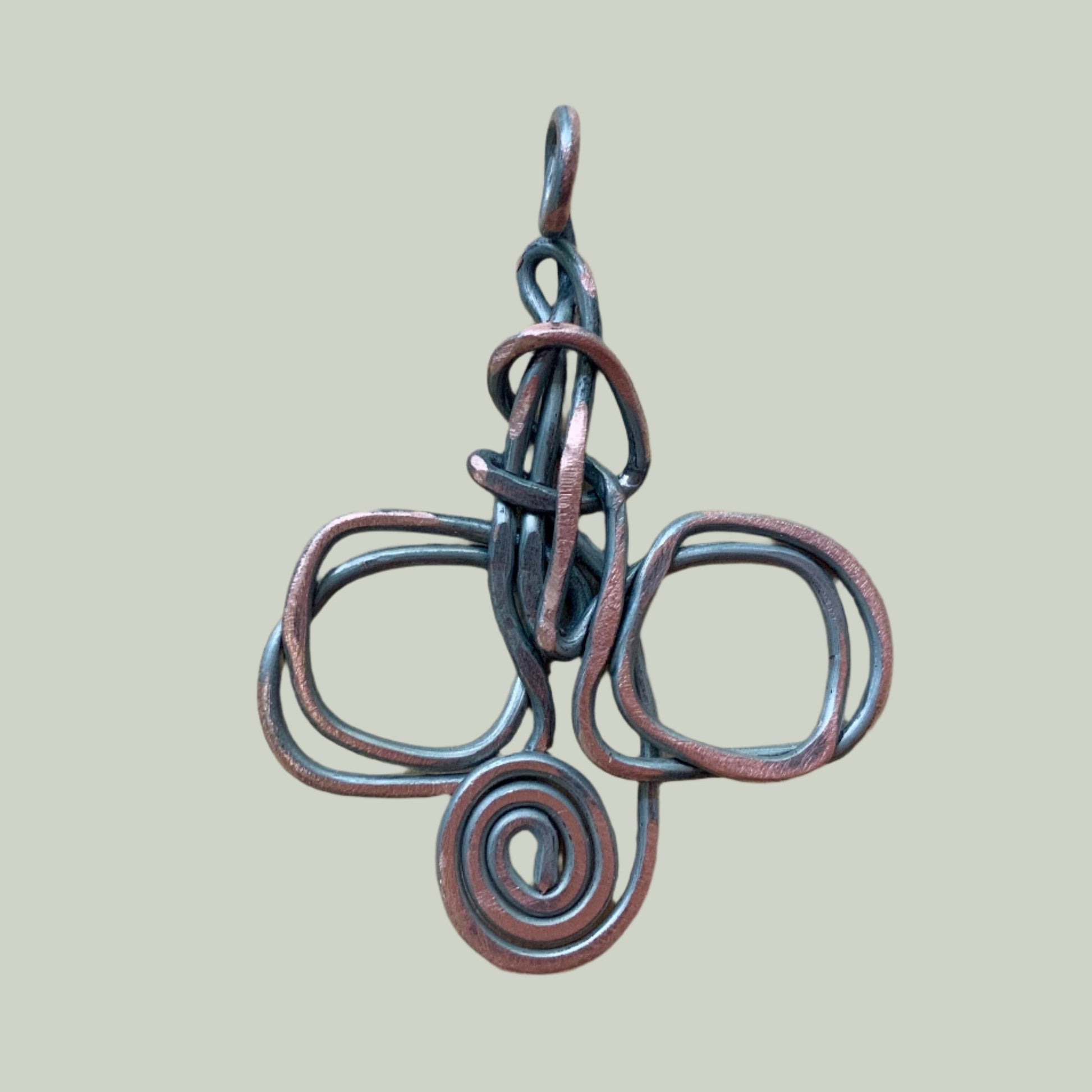 Forged and shaped entirely by hand, each pendant is unique. Constructed from vintage copper, they feature fluid, organic shapes that flow naturally. To enhance their visual appeal, areas with patina are artfully contrasted with carefully polished surfaces, bringing each piece to life as a wearable work of art.